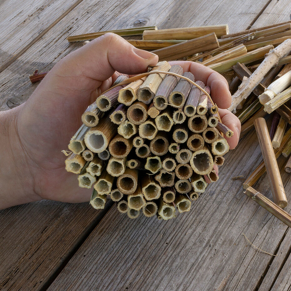 Ganz wichtig ist auch, dass Sie keine behandelten Materialien nehmen. Verschiedene Halme oder Holz, das mit Chemikalien und Pestiziden behandelt ist, kann sogar schädlich für die kleinen Bewohner werden. Auch aus diesem Grund sind die Schilfrohrhalme von Hiss-Reet unbehandelt und naturbelassen und eignen sich super für den Bau Ihres Insektenhotels.